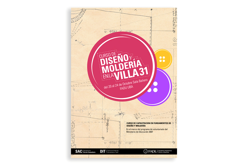 Curso de Diseño y Moldería en la Villa 31 / Afiche + Tapa + Flyer / Realizado para: SAC - Secretaría de Acción Comunitaria / Facultad de Arquitectura, Diseño y Urbanismo - Universidad de Buenos Aires / 2009